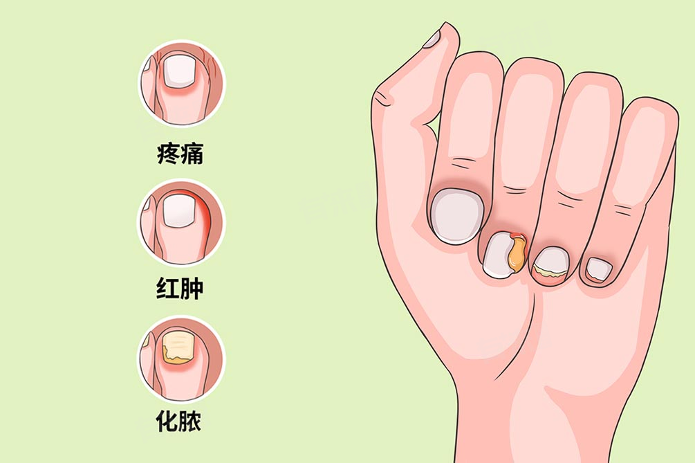 1、疼痛:炎症会导致指甲周围的软组织肿胀、发红,并刺激神经末梢,从而产生疼痛感。这种疼痛通常会在触碰或按压时加剧,影响患者的日常生活和工作。