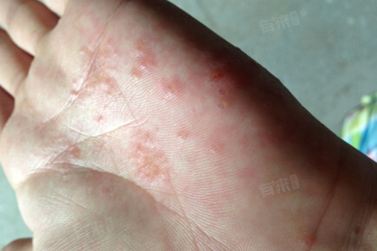 3、汗疱疹:汗疱疹是一种特殊类型的湿疹,与出汗不良等因素有关,多发于夏季。表现为手指或手掌出现群集的小水泡,伴有瘙痒或灼热感。可使用炉甘石洗剂、曲咪新软膏等进行治疗,也可选用曲安奈德尿素软膏、氧化锌软膏等缓解症状。若瘙痒明显,可口服抗组胺药物如氯雷他定片等。