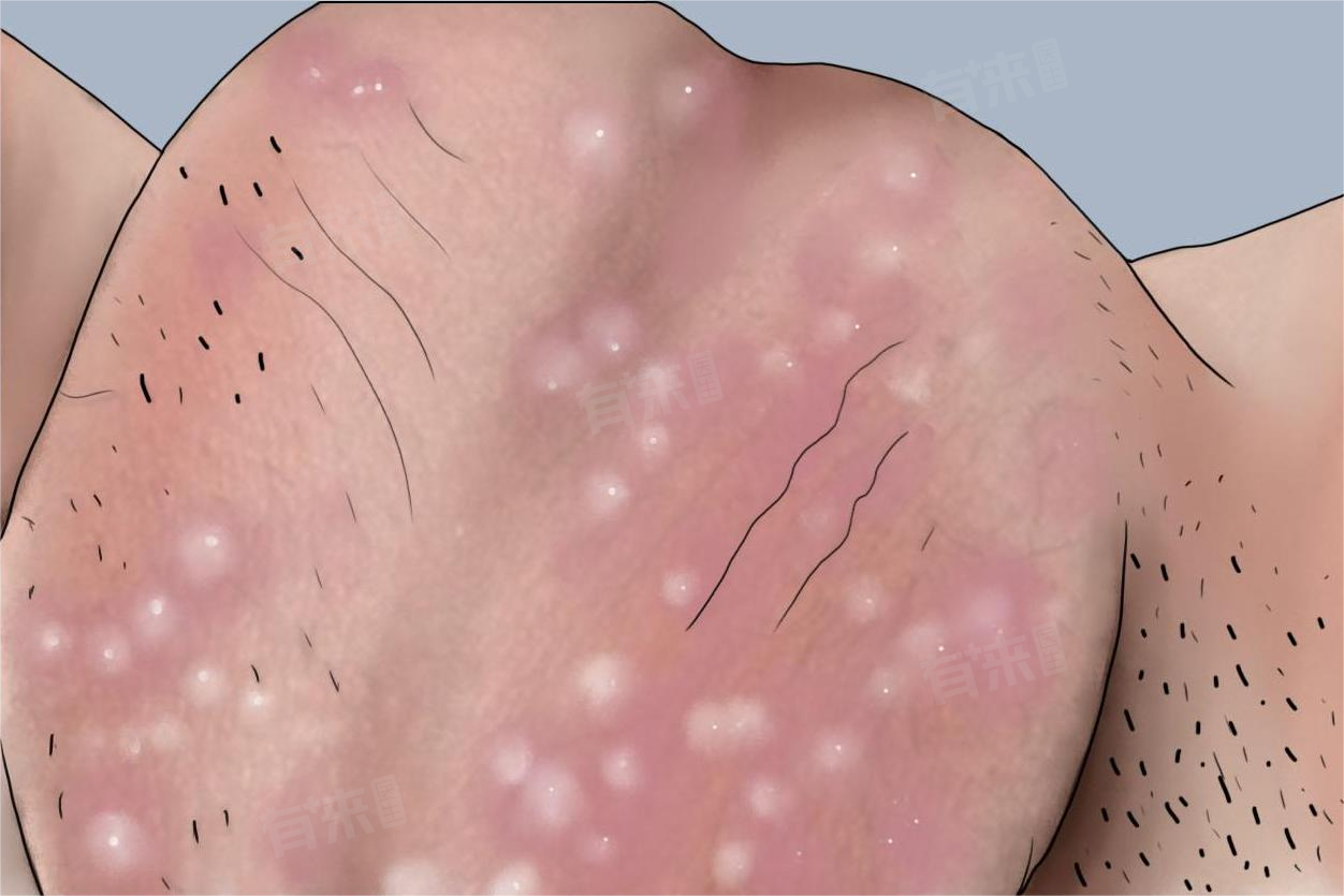 4、过敏反应:使用了不合适的清洁剂、避孕套或新换的内裤材质,可能导致阴茎根部皮肤过敏,出现鸡皮疙瘩样皮疹,常伴有瘙痒。患者应立即停用可疑过敏物,用清水冲洗阴茎根部。症状较轻者,可自行缓解;症状严重时,需在医生指导下口服抗组胺药物,局部涂抹糖皮质激素药膏。