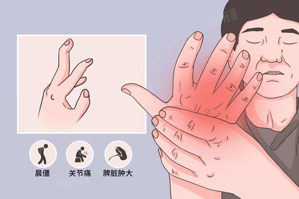 关节炎与类风湿关节炎相似,表现为关节肿胀、疼痛、僵硬等。可出现明显的脾脏肿大症状。中性粒细胞减少是典型表现,可能导致免疫力下降和易感染。其他症状如淋巴结肿大、贫血、血小板减少以及发热、体重下降等。