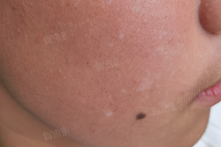 2、白色糠疹:白色糠疹是较常见的原因,多因皮肤干燥、日晒、营养不良等引起。儿童皮脂腺尚未发育完善,皮肤保湿能力差,若不注意护理,受外界环境影响易发病。表现为圆形或椭圆形色素减退斑,表面有细小鳞屑,边界不清,通常无自觉症状,好发于面部,一般可自行消退,适当涂抹保湿霜、避免过度日晒有助于恢复。