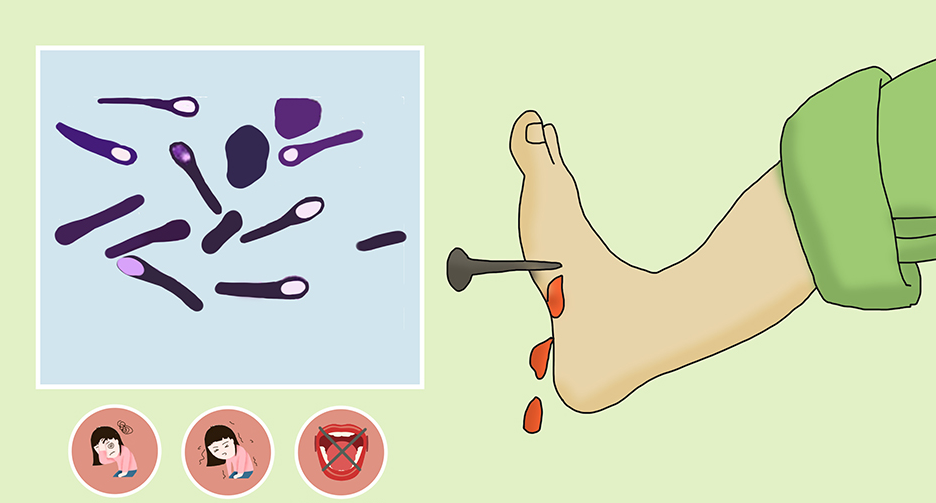 1、开放性损伤:如切割伤、撕裂伤、刺伤等,特别是当伤口较深且污染严重时,破伤风梭菌容易在伤口内繁殖。特别是被生锈的铁钉、木屑等尖锐物刺伤,更易导致破伤风感染。