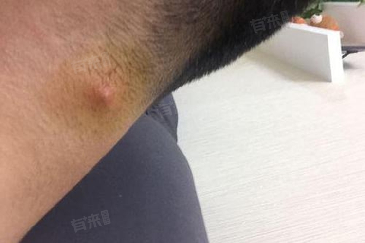 3、皮脂腺囊肿:是由于皮脂腺排泄管阻塞,导致皮脂腺囊状上皮被逐渐增多的内容物膨胀所形成的潴留性囊肿,常见于颈部等皮脂腺丰富的部位,表现为皮下圆形的小鼓包,可推动。对于较小的皮脂腺囊肿,若无症状可暂时观察。若囊肿较大或影响美观,可考虑手术切除。