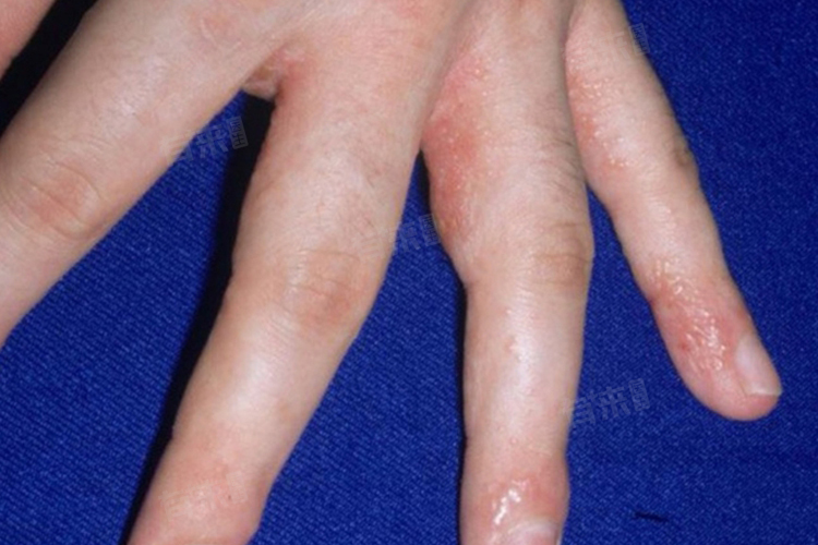 2、手癣:手癣是由真菌感染引起的皮肤病,手指上可出现白色水疱,伴有脱屑、瘙痒等症状,手癣常通过接触传播,如共用毛巾、手套等。应保持手部清洁干燥,避免长时间浸泡在水中;使用抗真菌药物,按疗程使用,直至症状完全消失;避免与感染部位直接接触,防止交叉感染。