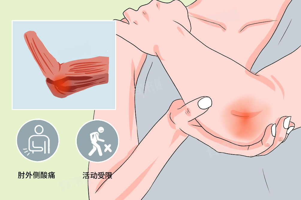 网球肘医学名为肱骨外上髁炎,多因前臂伸肌反复牵拉导致劳损引发,常见症状包括肘部疼痛、压痛明显、活动受限、肌肉无力等。