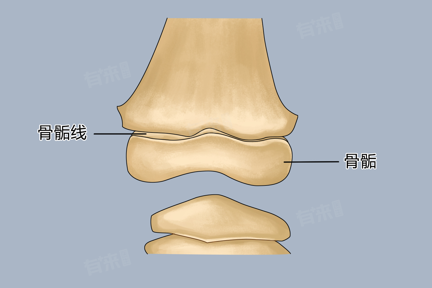 随着儿童年龄的增长,骨骺会逐渐发育成熟,并与干骺端融合,形成完整的骨骼结构。这个过程中,骨骺线会逐渐变窄、模糊,最终消失,标志着骨骼发育的完成和身高的停止增长。一般男性的骨龄在17-19岁开始闭合,女性的骨龄在16-17岁开始闭合。