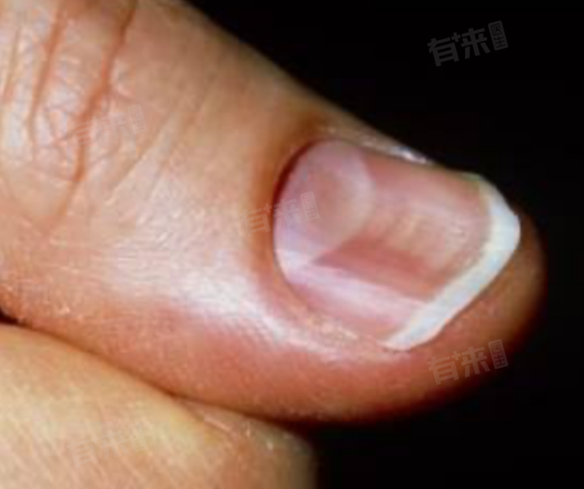4、银屑病:这是一种慢性炎症性皮肤病,除了皮肤出现红斑、鳞屑等典型症状外,还可能累及指甲。银屑病引起的指甲病变可表现为指甲凹陷,同时还可能伴有指甲表面的点状凹陷、甲分离、甲下积屑等症状。