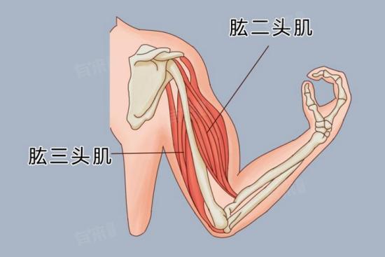 - 从外观上看,当伸直手臂时,可以在手臂的后侧感受到肱三头肌的存在。它与肱二头肌相对,肱二头肌位于上臂前侧。肱三头肌的主要作用是伸肘关节,同时还可以协助肩关节的伸展和内收。