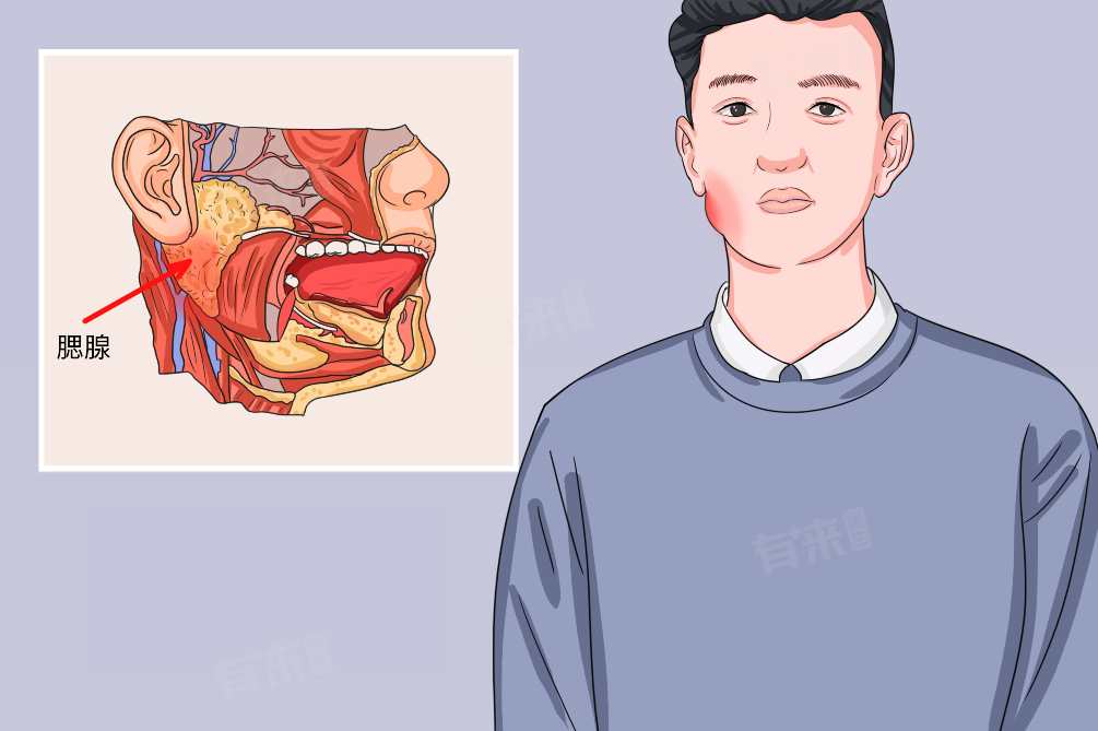 2、腮腺导管堵塞:涎石病是一个重要因素,腮腺分泌的唾液中含有钙盐成分,这些钙盐可能会在腮腺导管内沉积形成结石,结石一旦堵塞腮腺导管,唾液就不能正常排出,会导致腮腺肿胀,一些局部的创伤或者手术也可能损伤腮腺导管,引起导管狭窄或者堵塞,造成腮腺肿胀。