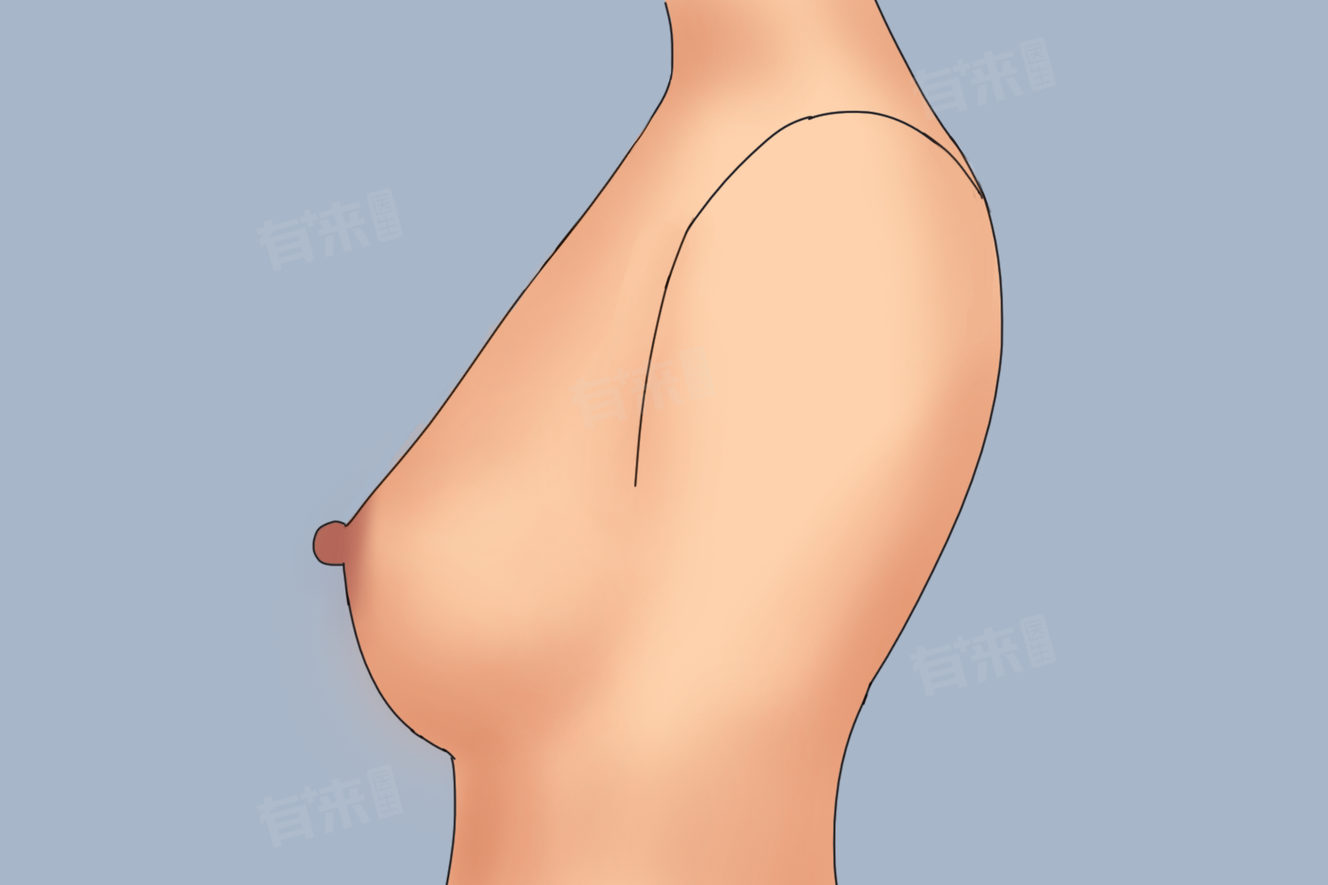 6、平胸型:乳房呈现平坦外观,多见于乳房发育不良的女性。