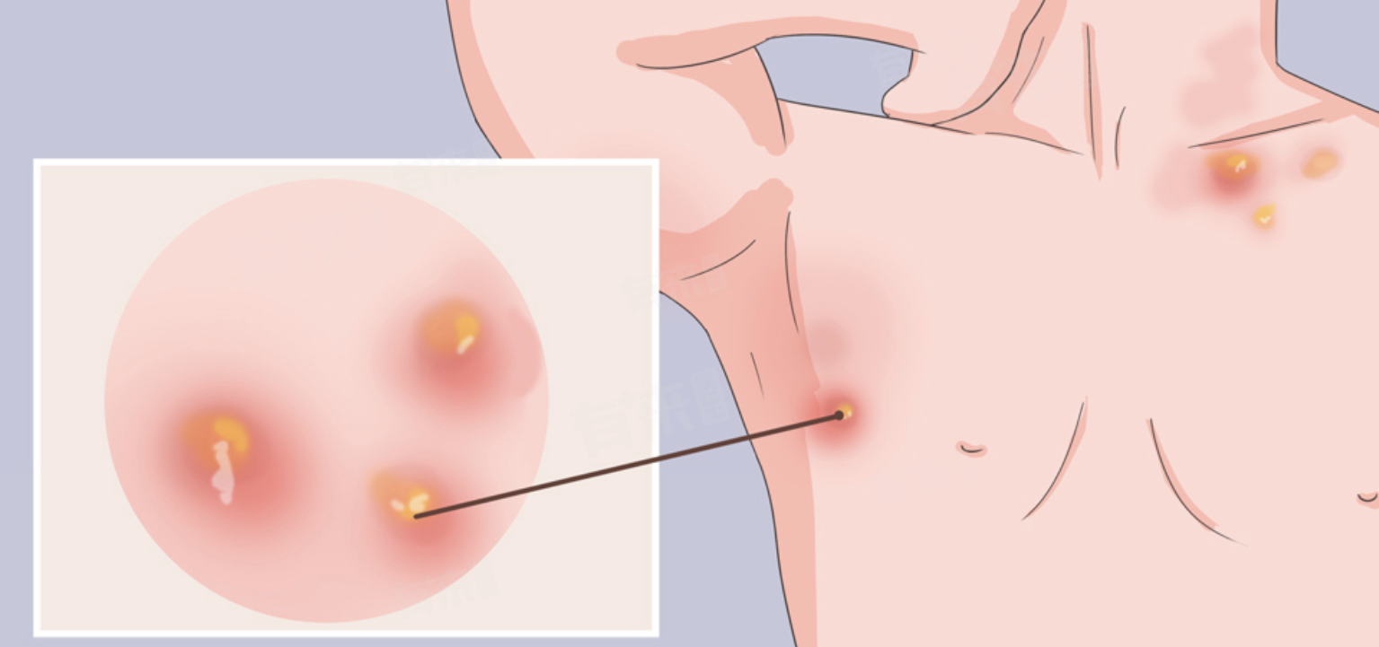 3、成熟状态:当疖子发展到成熟阶段时,中心部位会冒出白色或黄色的脓头。这个小小的脓包充满了脓液。周围的皮肤依然红肿,疼痛可能会比之前有所减轻,但仍然较为明显,此时疖子随时可能因为外力的刺激而破裂流脓。