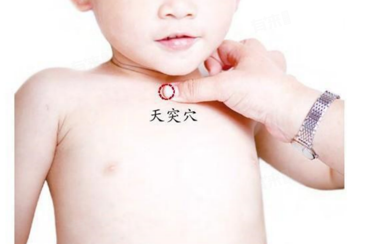 3、天突:处于颈部,前正中线上,胸骨上窝中央,隶属任脉。可利咽降气、止咳化痰,对儿童咳嗽伴有咽喉不适疗效佳。因穴位临近气管,针刺需极为谨慎,多采用先直刺0.2-0.3寸,再将针尖转向下方,沿胸骨后壁缓缓刺入,严格掌控进针角度与深度,以防刺伤气管。