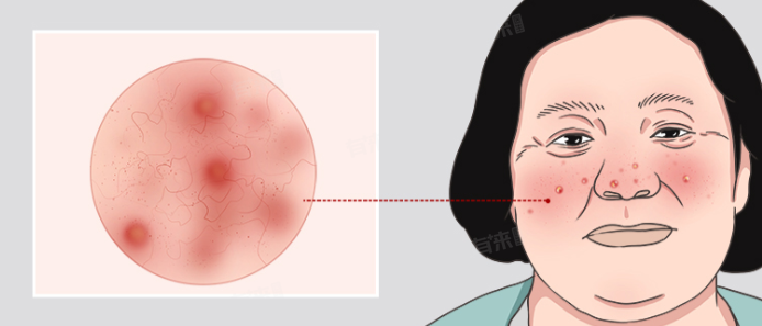 2、丘疹和脓疱:病情发展到一定阶段,红斑区域会出现一些细小的丘疹,严重时还会形成脓疱。这些丘疹和脓疱大小不一,通常比普通的痘痘要小,且周围伴有明显的红晕。它们可能会分批出现,此起彼伏,给患者带来不适和困扰。