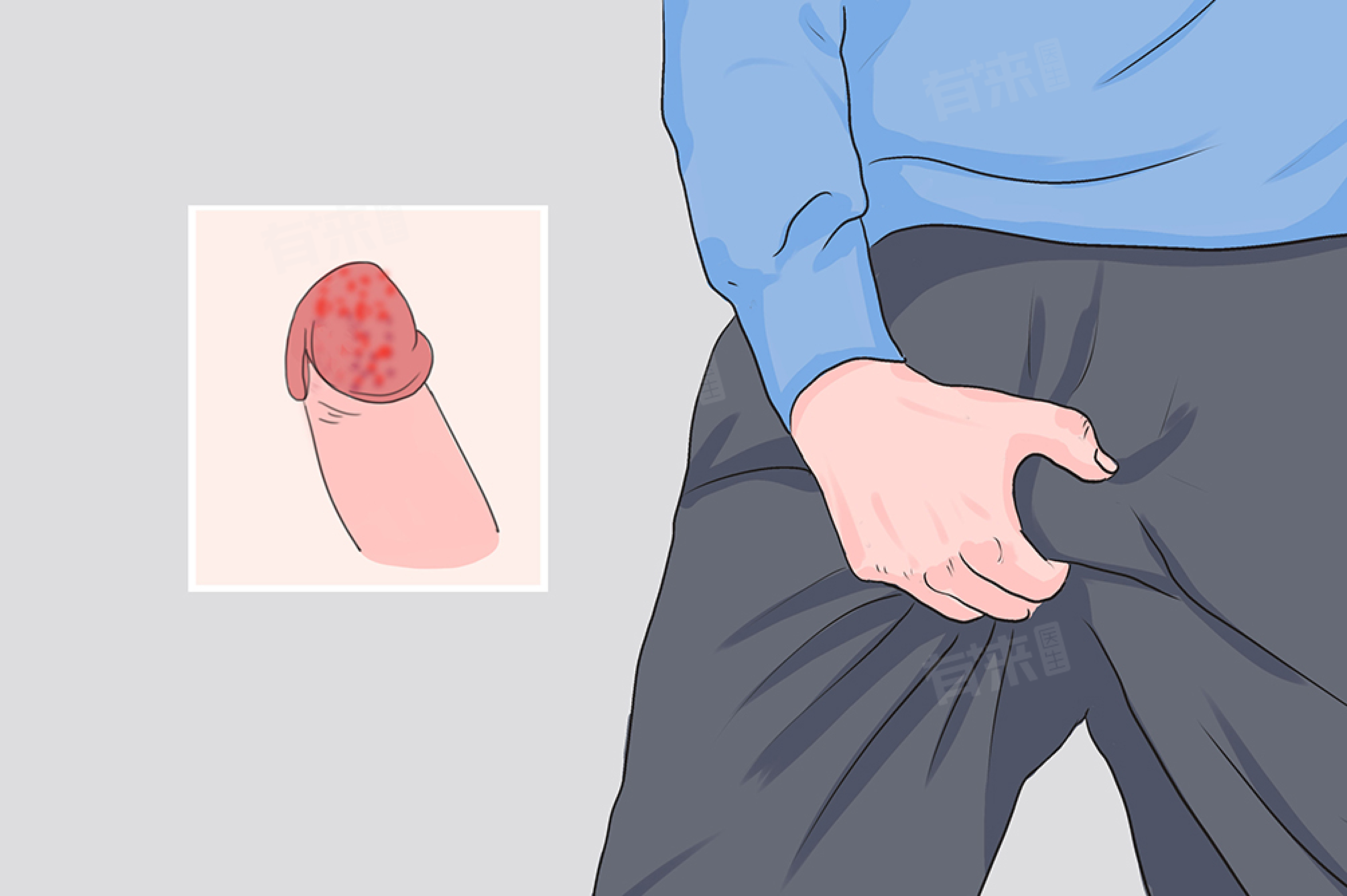 2、药物影响:服用某些药物(如磺胺类、解热镇痛药)后,在性生活刺激下,龟头可能出现固定性药疹,表现为边界清楚的红点或红斑,伴有瘙痒或疼痛。治疗要停用可疑药物,多饮水促进药物排泄。轻者可外用糖皮质激素软膏,重者需口服糖皮质激素(如泼尼松)和抗组胺药物进行治疗,同时密切观察病情变化。
