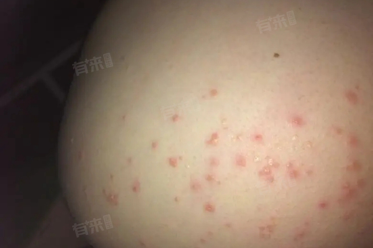 4、痱子:在高温闷热环境下,屁股局部汗液分泌过多但不易蒸发,导致汗腺导管堵塞、汗液潴留,形成痱子。表现为密集排列的针尖至针头大小的丘疹或丘疱疹,周围有轻度红晕,有刺痛或瘙痒感。