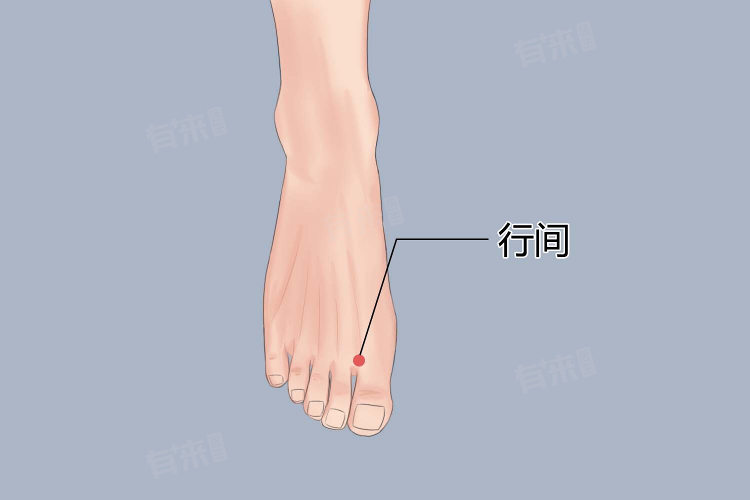 - 在寻找这个穴位时,可以先找到脚背上大脚趾和二脚趾之间的缝隙,然后顺着缝隙往脚趾根部方向推,在脚趾缝与脚底皮肤颜色交界处(赤白肉际)就是行间穴。这个位置处于足厥阴肝经上,是肝经气血运行的重要穴位之一。