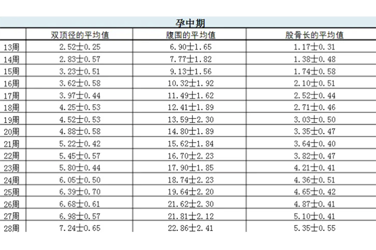 - 股骨长的正常范围随孕周的增加而逐渐增大。一般来说,从孕13周开始,胎儿的股骨长会逐渐增长,到孕37周左右达到相对稳定的水平。如果股骨长测量值明显偏离正常范围,可能提示胎儿存在生长发育受限、侏儒症或染色体异常等问题。此时,医生需要进一步检查以明确诊断并采取相应的治疗措施。