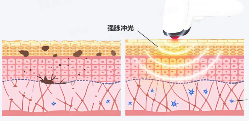 - 光子嫩肤:光子嫩肤采用特定的宽光谱彩光,这些光能够穿透皮肤深层,选择性作用于皮肤的色素和血管,分解色斑,闭合异常的毛细血管。同时,它还能刺激皮下胶原蛋白的增生,提升皮肤的弹性和紧致度。光子嫩肤是多波长,可覆盖多种靶色基如黑色素、氧化血红蛋白、水等的多个吸收峰。