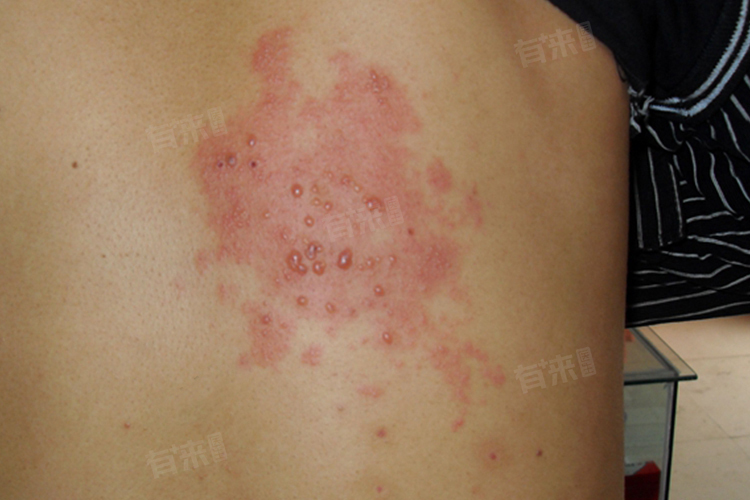 - 固定型药疹:皮疹特点是在皮肤黏膜的同一部位反复出现圆形或椭圆形的红斑,边界清楚,红斑中央可有水疱,伴有瘙痒或灼痛。好发于皮肤黏膜交界处,如口唇、生殖器、肛周等部位,也可出现在四肢、躯干。每次发作都在原来的部位或附近,有一定的固定性。