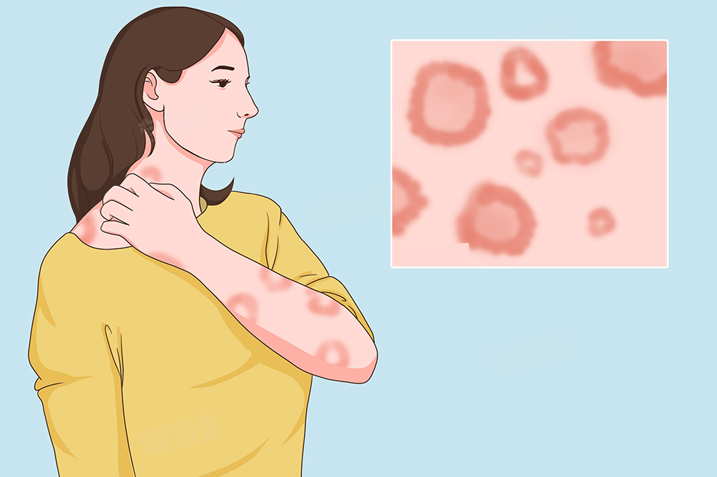 1、环形红斑:环形红斑是一种皮肤炎症性疾病,表现为边缘隆起的环形或半环形红斑,中央皮肤可能正常或轻度凹陷,形似烫伤疤痕,治疗通常包括遵医嘱使用抗炎药物,如局部涂抹糖皮质激素药膏,以减轻炎症和症状。