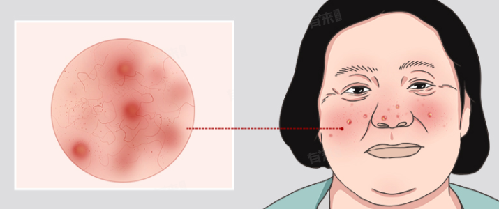 - 初期为红斑期,患者的鼻部、两颊、前额等部位会出现对称性红斑,尤其在进食辛辣食物、情绪激动、遇热等情况下,红斑会更加明显,且红斑时隐时现,之后会逐渐持续不退。发展到丘疹脓疱期,在红斑的基础上,会出现针头至绿豆大小的丘疹、脓疱。如果病情进一步恶化,进入鼻赘期,鼻部会出现增生肥大,形成大小不等的结节状隆起,鼻子变得又大又红,形状像肿瘤,严重影响面部美观。