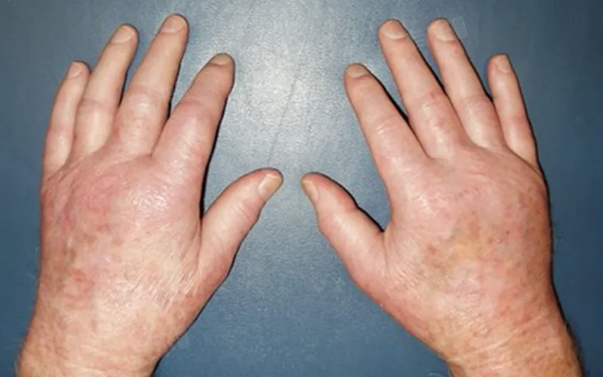- 受累部位:该疾病主要累及手、足的小关节,如指、掌指和腕关节,同时膝关节、肩胛带以及下肢、踝部和脚背也可能受累。患者常出现手背和指凹性水肿,且晨僵时间较长。