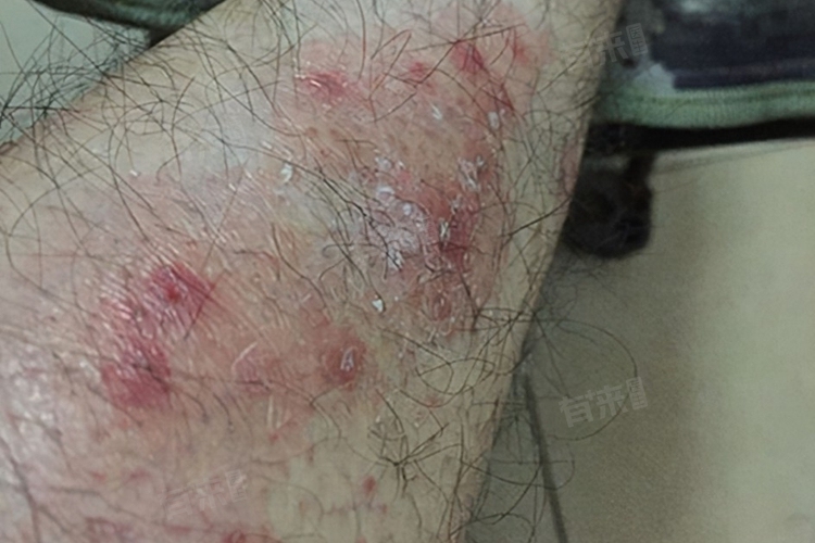 - 随着病情的发展,腿上湿疹的红斑丘疹会逐渐加重,出现渗出、糜烂和结痂等症状。患者因瘙痒反复抓挠,导致皮肤破损,形成渗出液,进而引发糜烂和结痂。