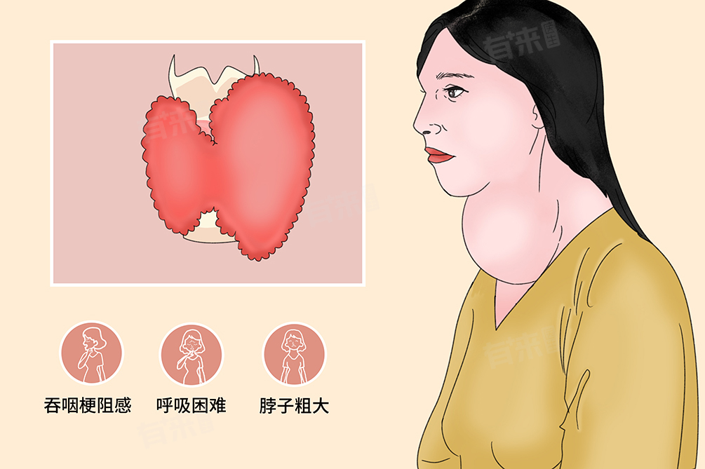 2、碘过量:虽然碘缺乏可引起大脖子病,但碘过量也可能导致甲状腺肿大。过多的碘摄入可能干扰甲状腺的正常功能,引起甲状腺自身免疫反应,导致甲状腺肿大。一般为轻度肿大,可伴有甲状腺功能异常。