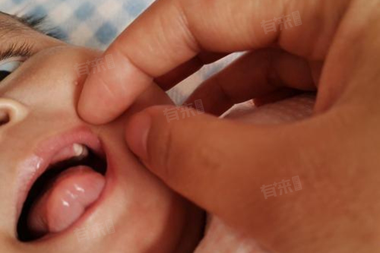2、鹅口疮:鹅口疮是由白色念珠菌感染引起的一种口腔黏膜疾病,表现为牙龈上出现白色斑膜,类似奶块,但不易被擦去。鹅口疮可能会导致婴儿烦躁、哭闹、拒食等症状。治疗上可在医生指导下使用抗真菌药物。