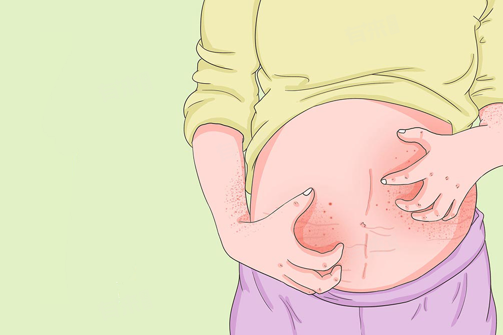 3、妊娠纹形成:随着胎儿的成长,孕妇的腹部皮肤受到牵拉,弹力纤维和胶原纤维逐渐断裂形成妊娠纹。此类妊娠纹可能会伴随瘙痒感,尤其在妊娠晚期更为明显。