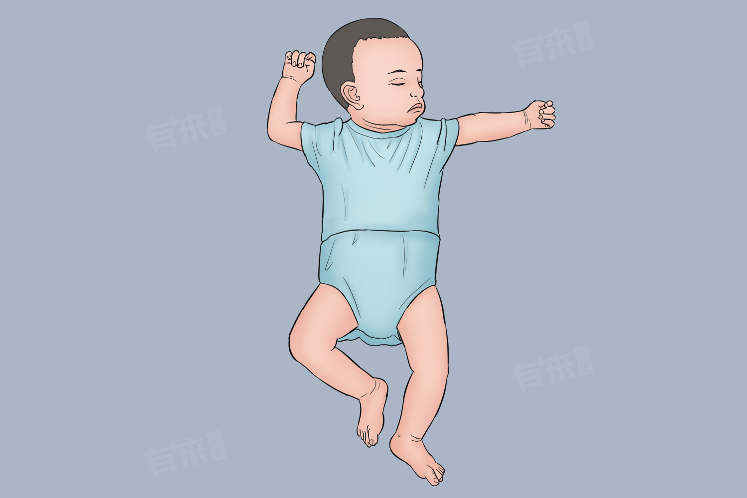 3、环境温度影响:如果环境温度较高,新生儿可能会感觉热,此时其会通过伸展手指等方式来散热,让自己感觉更舒适。反之,温度低时可能会握拳。这种身体的自然调节机制与智商无关,只是一种适应环境的本能表现。保持宝宝所处环境温度适宜,一般在22-24摄氏度左右,让宝宝身体处于舒适状态,减少因温度不适引起的身体姿势变化。