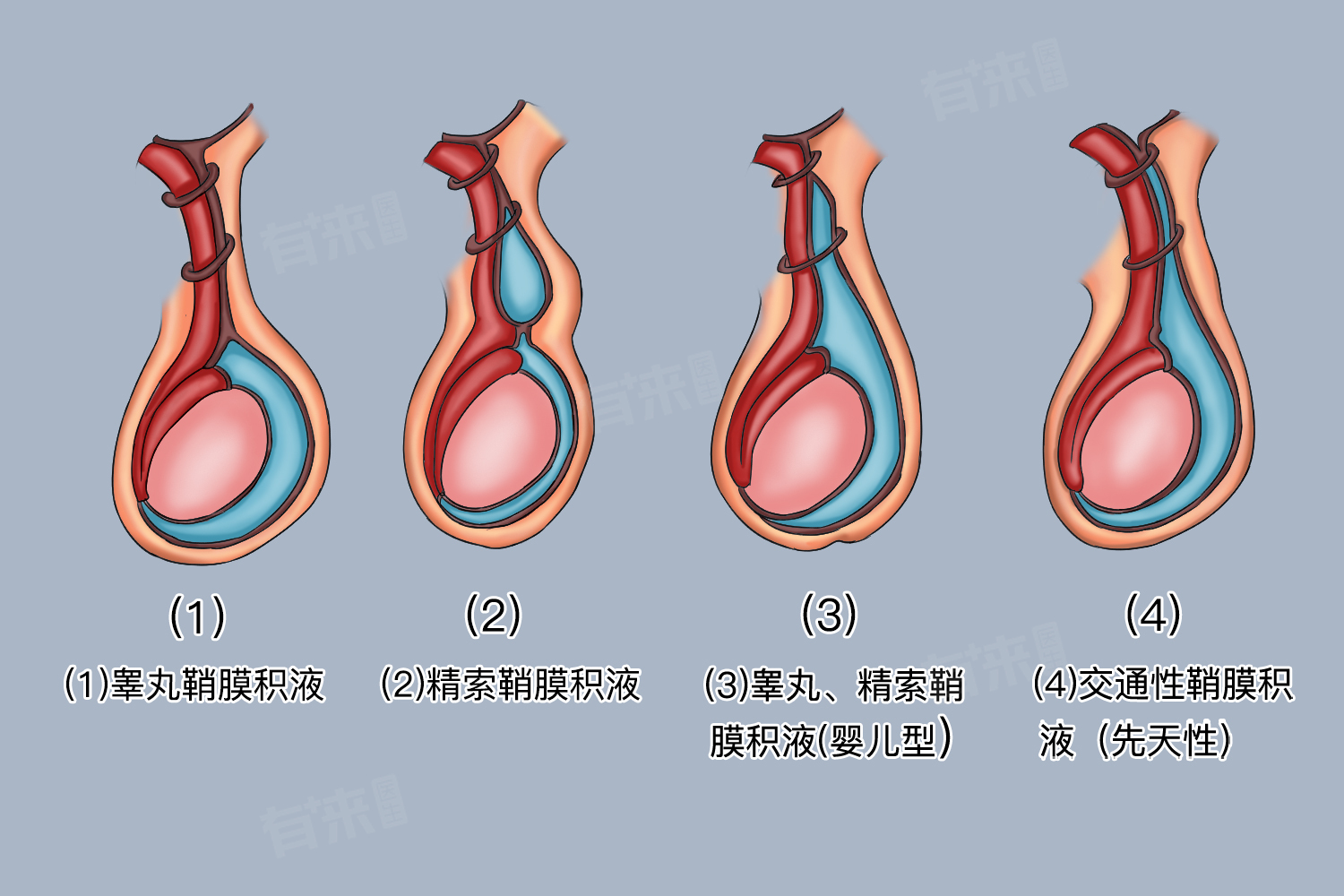 - 鞘膜腔未闭合:在胚胎发育过程中,鞘膜腔应逐渐闭合。若鞘膜腔未闭合或闭合不全,可能导致液体在鞘膜腔内积聚,形成先天性鞘膜积液。