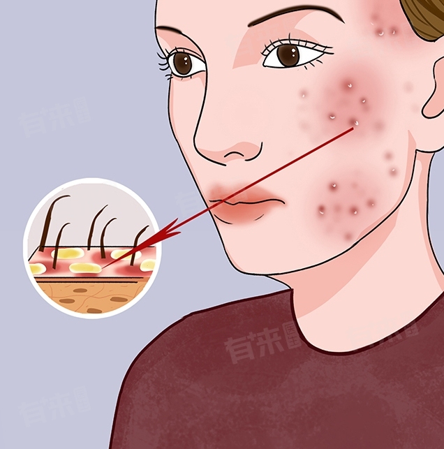 1、皮肤红斑:面部皮肤出现边界不清的红斑,颜色多为淡红色至鲜红色,红斑可呈弥漫性分布,也可局限于某一区域,如脸颊、额头、下巴等部位。红斑的出现是由于皮肤炎症导致血管扩张,血液渗出到周围组织,使得皮肤呈现出红色改变;
