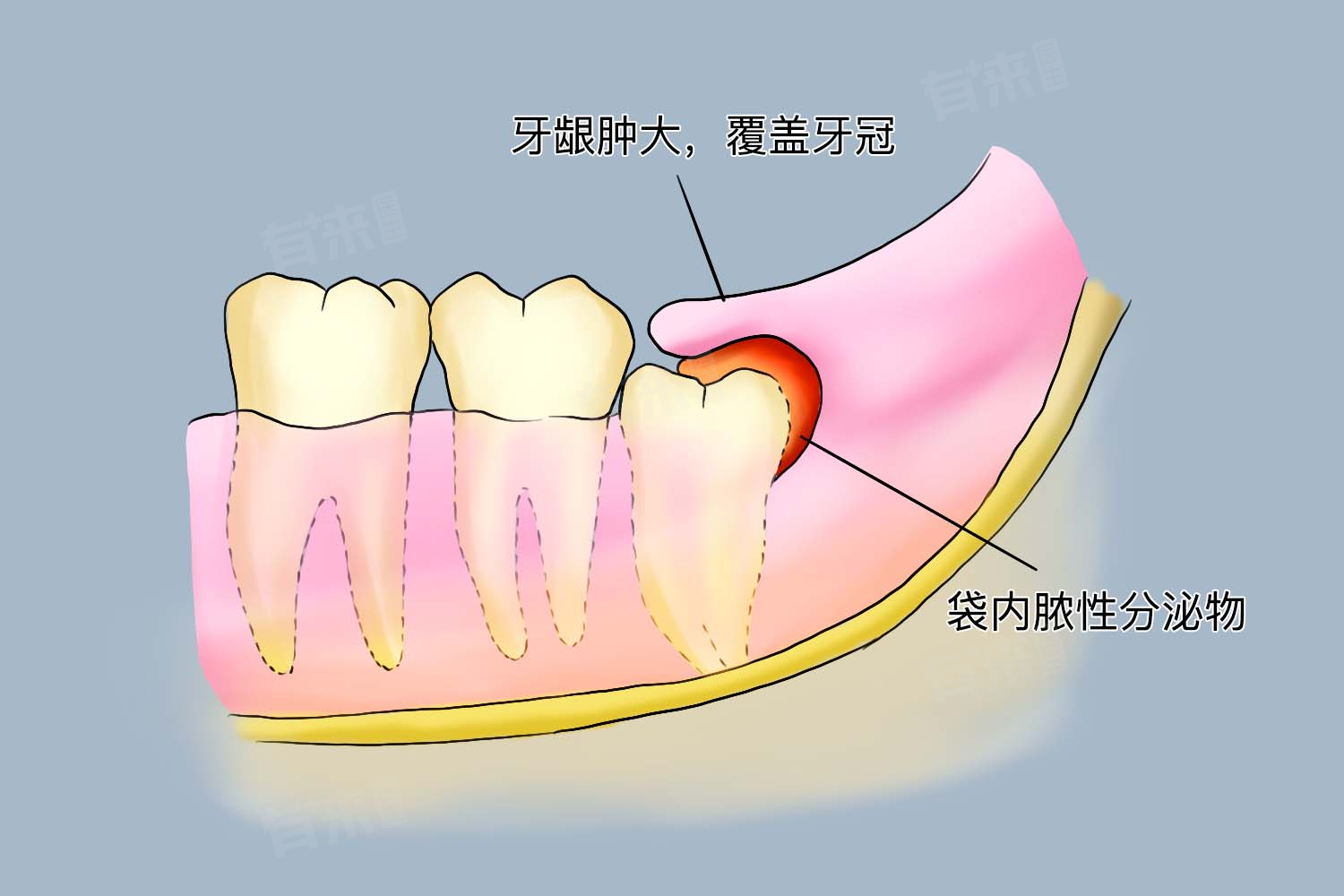 - 在牙周病较为严重的情况下,牙周袋可以变得非常明显,它不仅表现在龈缘与牙齿之间存在明显的缝隙,而且在这个缝隙中还可能藏有食物残渣和菌斑,这些物质难以通过常规的口腔清洁方法清除。此外,由于牙周袋内环境潮湿且富含营养,非常适合细菌生长繁殖,这又进一步加剧了炎症反应。