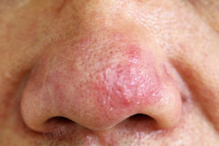 - 当酒渣鼻进一步发展,在潮红的基础上,皮肤会出现散在的丘疹,形似痤疮,严重时还会发展为脓疱。这些丘疹和脓疱会影响面部的美观,给患者带来心理压力,并且容易引发炎症,若处理不当,可能导致皮肤感染加重。