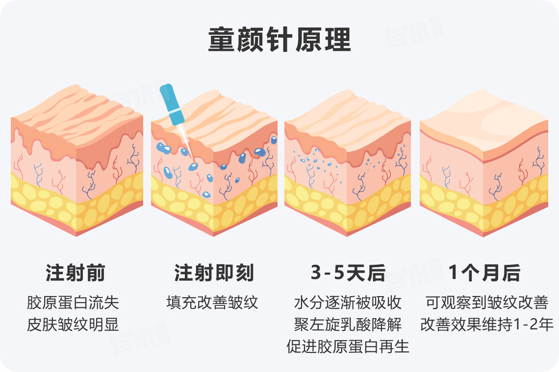 2、药物吸收差异:童颜针中的活性成分在不同人体内的吸收速率存在很大差异,初次注射后,部分人可能会发现效果很快显现但也消退得较快,这是因为他们的身体迅速吸收了这些成分。而通过多次注射,可以逐步建立起更加稳定的效果,使得填充物能够在体内更均匀地分布并被缓慢吸收,从而延长美容效果的持续时间。
