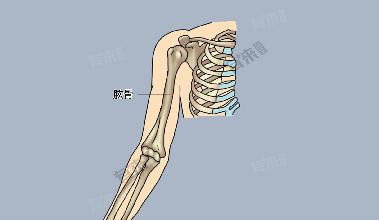 - 肱骨是臂部唯一的长骨,从肩胛骨的关节盂延伸至肘部,构成了肩关节的一部分。肱骨对于手臂的运动非常重要,它允许手臂完成广泛的运动范围,包括旋转、屈曲和伸展等动作。肱骨近端有较大的头部用于与肩胛骨相接,而远端则形成了肘关节的一部分,与尺骨和桡骨相连。