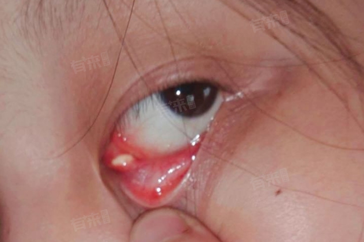 2、麦粒肿初期:主要因葡萄球菌感染睑板腺或睫毛毛囊附近的皮脂腺,初期眼皮局部红肿,下眼睑翻开可见白脓包。早期可热敷,促进炎症吸收,并根据医生建议涂抹抗生素眼膏,睡前涂于眼内,若病情进展,出现明显脓肿,则需切开排脓治疗。