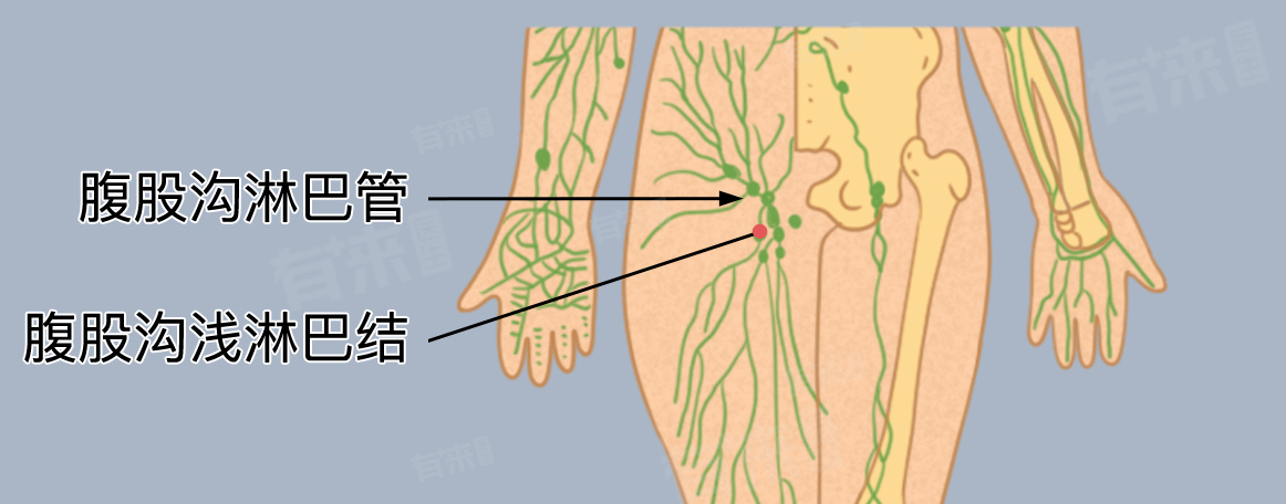 - 位于大腿根部的腹股沟淋巴结对下肢和生殖器区域的淋巴液进行过滤,并参与局部免疫反应。