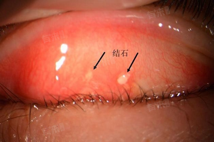 1、结膜结石:结膜长期受炎症刺激,上皮细胞代谢异常,脱落的上皮细胞和黏液浓缩堆积,形成黄白色凝结物。初期结石埋于结膜下,隆起后会突出结膜表面,表现为眼球上的白点,可引发异物感。
