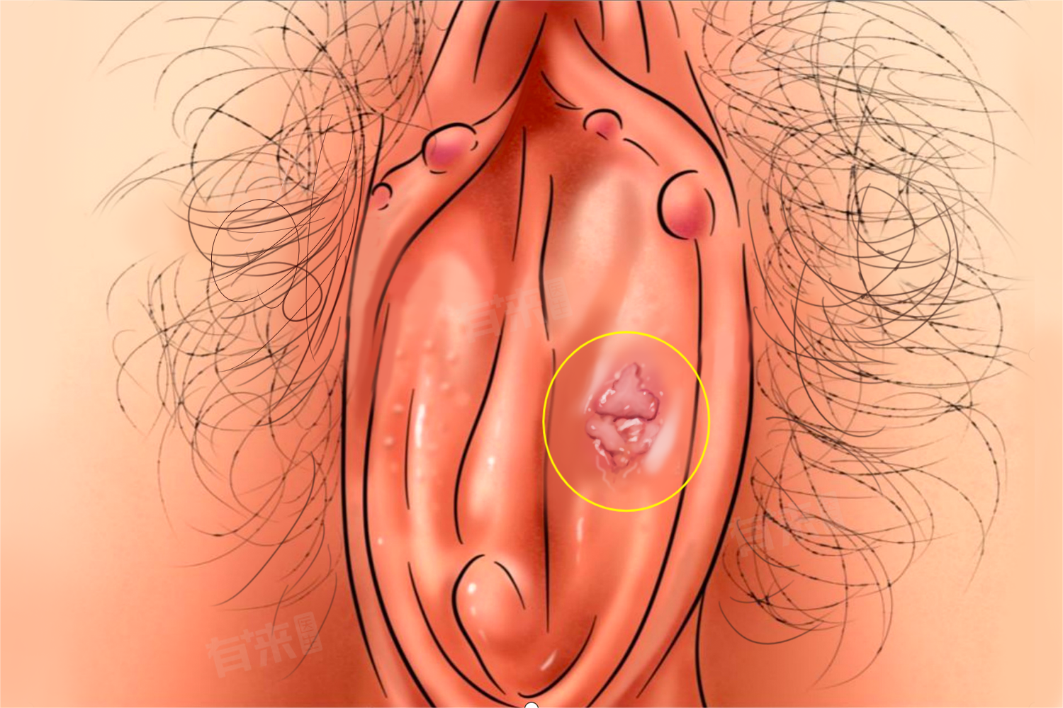 尖锐湿疣是由人乳头瘤病毒感染引起的一种皮肤病,也是最常见的性病,女性患者可能出现外阴瘙痒、灼痛或性交后疼痛不适等症状,外阴、阴道口、宫颈等部位可能出现单个或多个淡红色小丘疹,质地柔软,顶端尖锐。随着病情发展,这些丘疹可能逐渐增多增大,形成乳头样、菜花样等形态的改变。