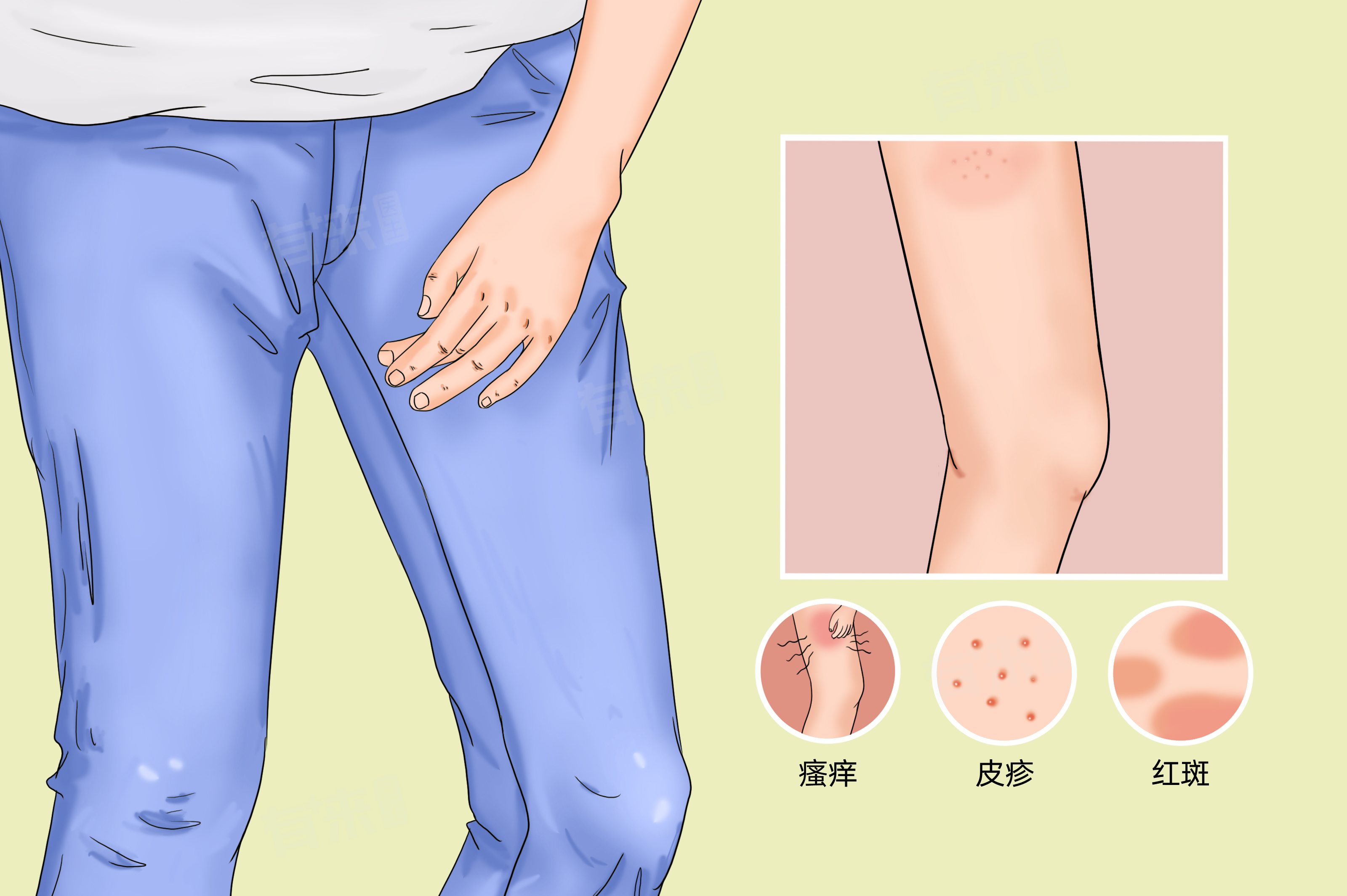 - 洗澡时,避免水温过高,防止热水刺激皮肤,加重瘙痒症状。不要过度搓洗患处,选择温和、无刺激的沐浴产品。洗澡后,及时擦干身体,尤其是大腿两侧,保持皮肤干爽。