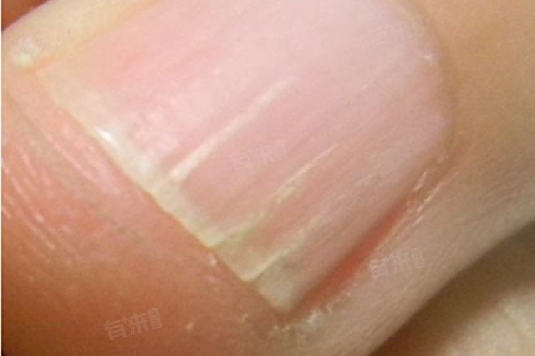 - 另外一些皮肤疾病累及指甲也会出现竖纹,如银屑病,这是一种慢性炎症性皮肤病,除了皮肤出现红斑、鳞屑等症状外,还可能侵犯指甲,导致指甲表面出现点状凹陷、竖纹等改变。扁平苔藓也是一种常见的皮肤黏膜病,当侵犯指甲时,可使指甲出现竖纹、甲板变薄、粗糙等症状。