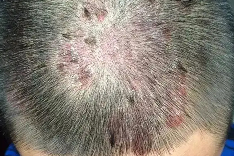 5、感染因素:细菌、真菌或病毒感染人体后,与免疫系统相互作用诱发银屑病,表现为头皮红斑广泛分布、鳞屑极厚、瘙痒难忍、脱发严重,可能伴有感染症状。进行抗感染治疗,控制感染源。在抗感染治疗的基础上,加强系统治疗和外用药物治疗,必要时遵医嘱使用生物制剂进行治疗。