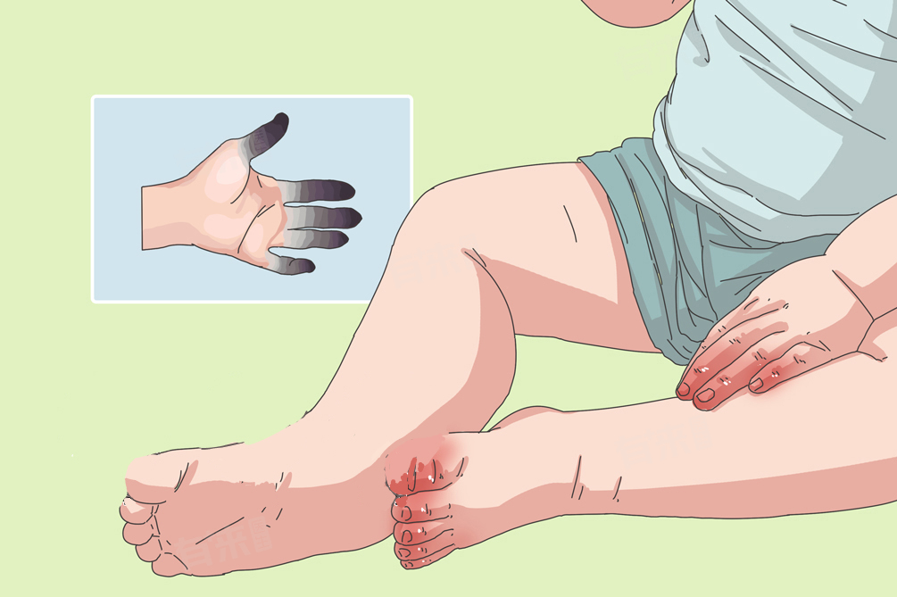 1、皮肤变色:受冻皮肤起初会呈现苍白之色,这是因为低温下血管收缩,血液减少灌注,随着血管反应变化,会逐渐转为紫红色,如在手部冻疮时,手指尖及手背常先变白,而后发紫红,这种颜色改变在不同肤色人群中均较为明显,且颜色变化区域与周围正常皮肤界限可逐渐清晰。