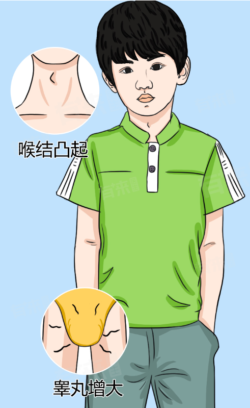 随着生殖器官的发育,男孩的第二性征也逐渐显现,12-13岁前列腺开始分泌,喉结增大,阴茎生长速度加快,13-14岁,声音开始变粗,出现变声现象,都是男孩发育过程中的正常现象,家长应给予孩子正确的引导和支持。