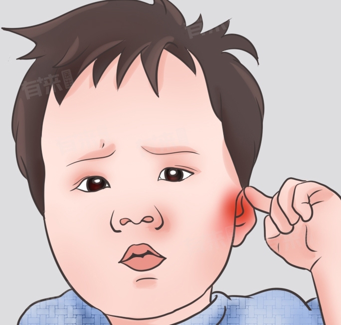 5、腮腺炎波及:流行性腮腺炎病毒感染腮腺后,炎症向周围组织扩散,累及耳部神经,导致耳周放射性疼痛。孩子可能先出现腮腺肿大,随后出现耳痛,疼痛多为持续性胀痛,伴发热、食欲减退,张口或咀嚼时疼痛加剧。