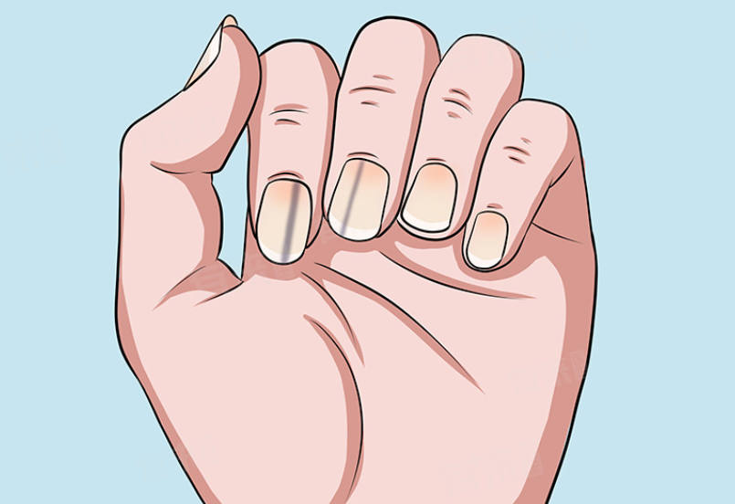 1、甲板纵行黑线:典型表现为指甲上出现纵向褐色或黑色条纹,宽度不一,可能单发或多发。