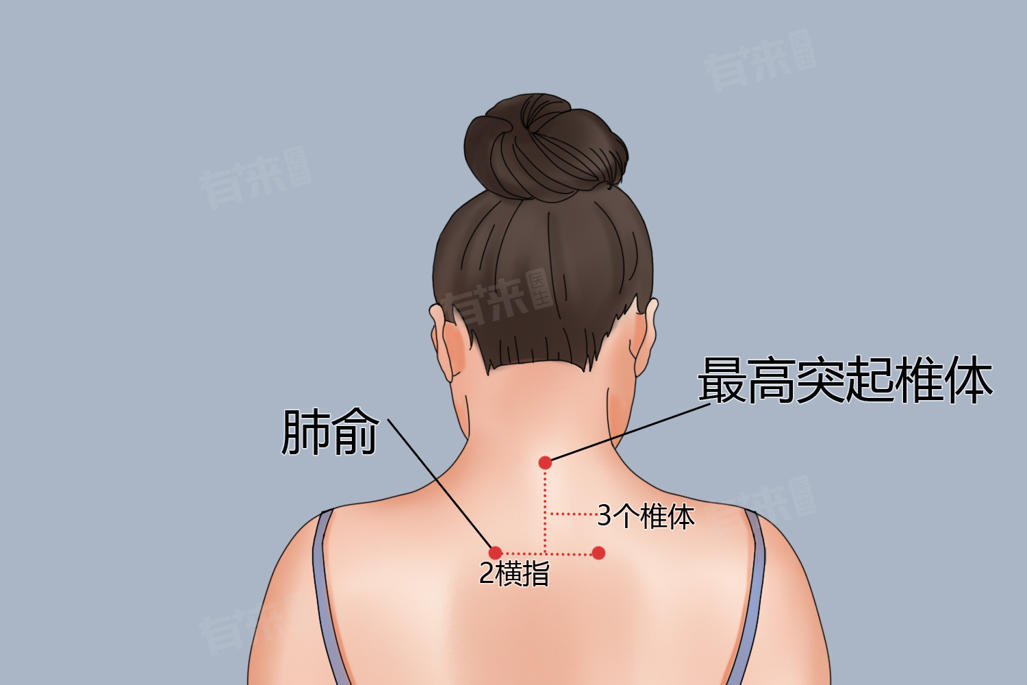 肺俞穴作为足太阳膀胱经上的重要穴位,位于背部第三胸椎棘突下旁开1.5寸处,相当于两侧肩胛冈内侧缘连线与后正中线的交点下方,旁开约两横指的距离。具有宣肺止咳、化痰平喘、补肺气、缓解胸背疼痛,以及改善皮肤问题等多种功效。