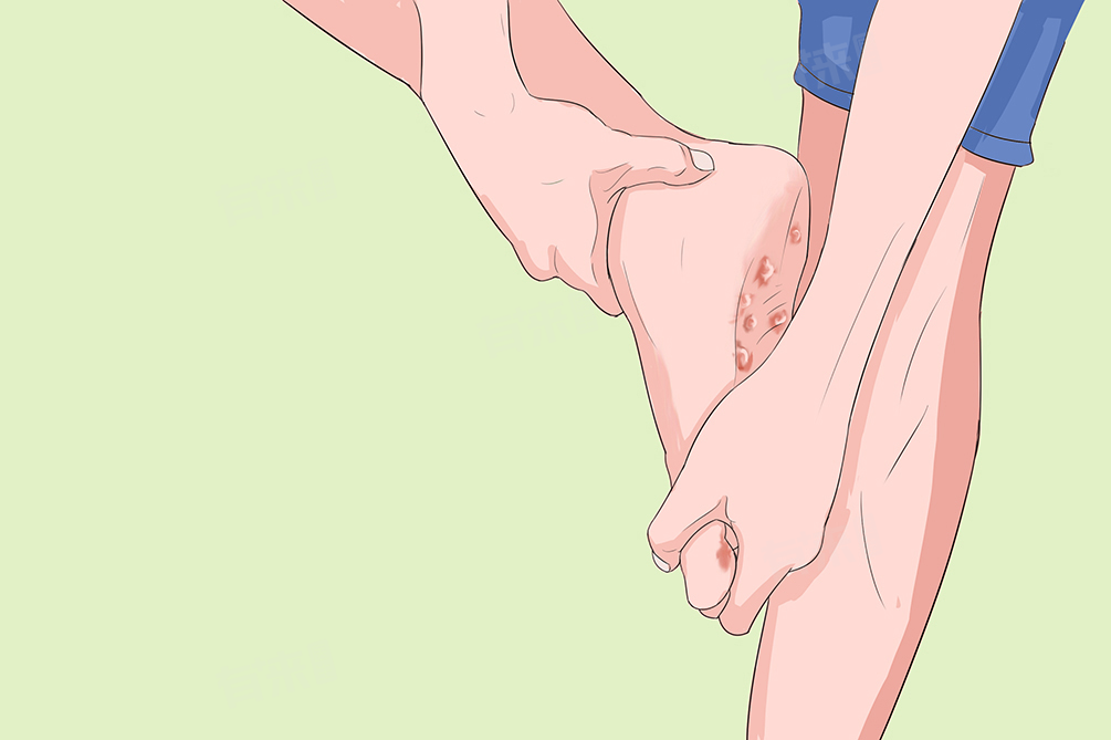 4、汗疱疹:汗疱疹是一种好发于手掌、足底的水疱性皮肤病,病因尚不明确,可能与遗传、过敏、精神因素等有关。患者脚部会突然出现米粒至黄豆大小的水疱,水疱可逐渐融合成大水疱,疱液初期清澈,后期可能变浑浊。同时,脚部会伴有明显的瘙痒感,严重时还会出现刺痛。汗疱疹容易反复发作,给患者带来较大困扰。
